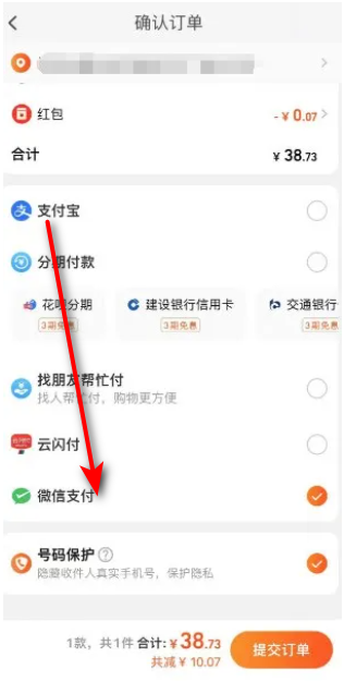 2.勾选微信之后后提交订单结算就可以跳转微信支付了。