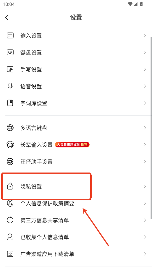 2.进入隐私设置。