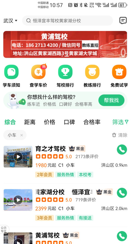 2、进入绑定驾校页面后,可以通过滑动屏幕浏览驾校列表,找到并点击自己的驾校;或者使用搜索功能,输入驾校名称进行快速定位。