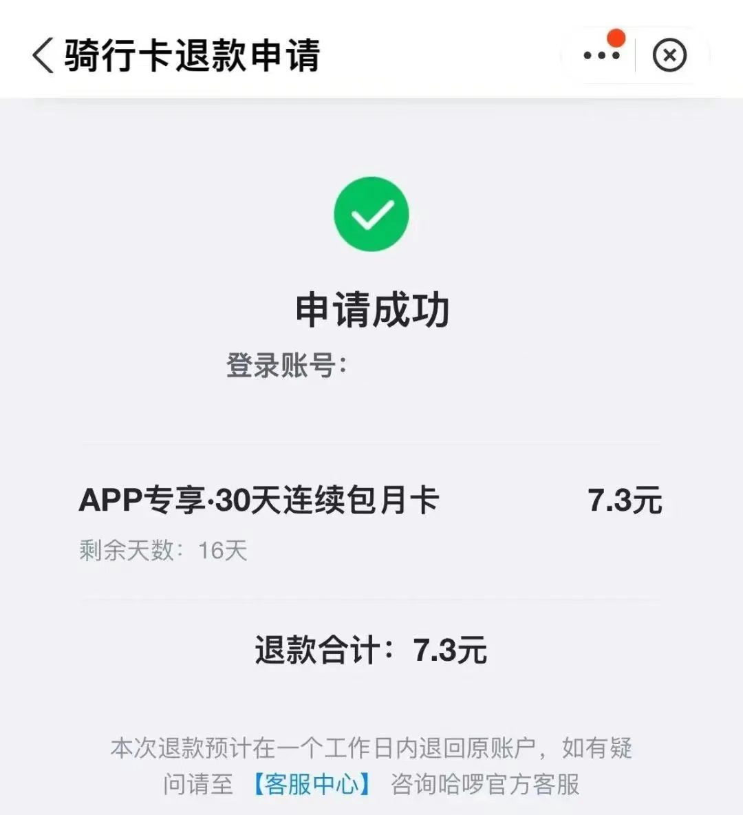 ●通过哈啰出行APP申请退款:打开哈啰出行APP,进入“我的”页面,找到“客服中心”或“联系客服”选项。在客服界面中,选择“骑行费申诉”或“退卡服务”等选项,然后按照提示操作即可。