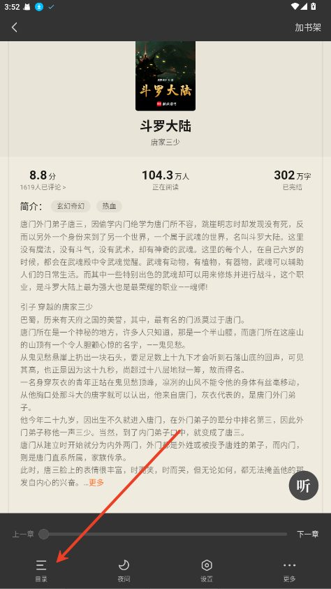 1.进入小说阅读界面。