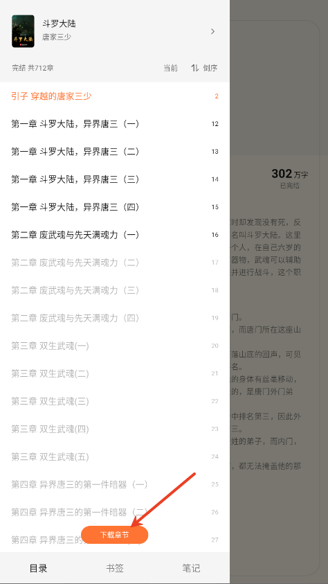 3.点击下载章节。