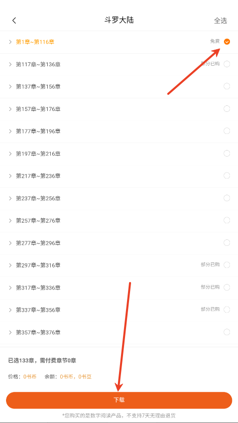 4.选择章节下载即可。
