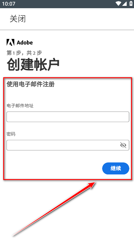 2.请输入电子邮件地址和密码,接着点击继续。