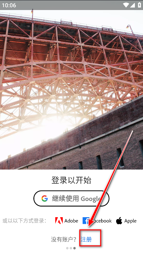 1.打开Lightroom,点击注册。