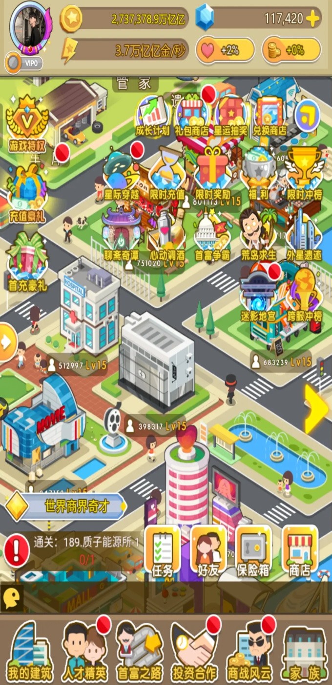 好了最后我来说一下这个游戏呢氪金其实是可以氪的,无论大氪还是小氪,小氪呢每天一元买礼包获得累天充值也很丰富。还有就是永久卡也是可以省去我们投资点击,这个也挺划算的,长期玩的话。所以还是挺建议的氪下金的。最后的最后给大家附上一个新区冲榜的顺序(也可以说是常规顺序吧)赚速增幅 人才能力增幅 家族经验加上商战 宴会 单人金币加上家族金币消耗 钻石消耗 投资次数消耗,好了就是这几个榜了。其实上面我也也提及到怎么玩这些个榜了。认真发掘一下就好了。最后的最后的最后,在此祝所有看本攻略的玩家能有所收获,也祝所有玩家能玩的开心