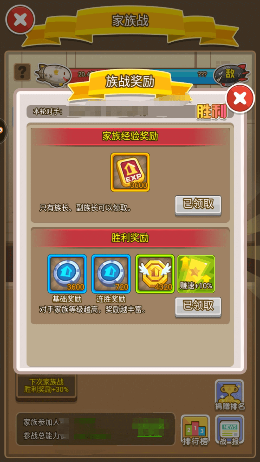 介绍完了上面的我们该说说家族了,家族有很多功能,家族宴会家族副本,家族战等等。这其中最重要的莫过于家族战。因为家族战的胜利能给我们的赚速带来百分之十的提升,还有很多奖励。