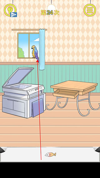 2.将鱼对着窗帘后面的鹦鹉进行使用,获得铜锣烧的纸。