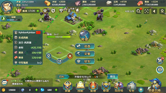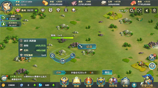 (9)在升级建筑的同时,领主征战领地、升级英雄的脚步也不应该停歇。多占领一些4级地,增加资源产量的同时,也能升级英雄等级。