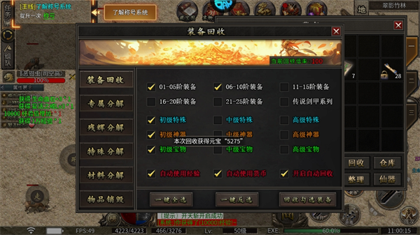 1、游戏上线就送新手礼包自动拾取、自动回收功能。