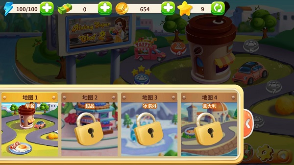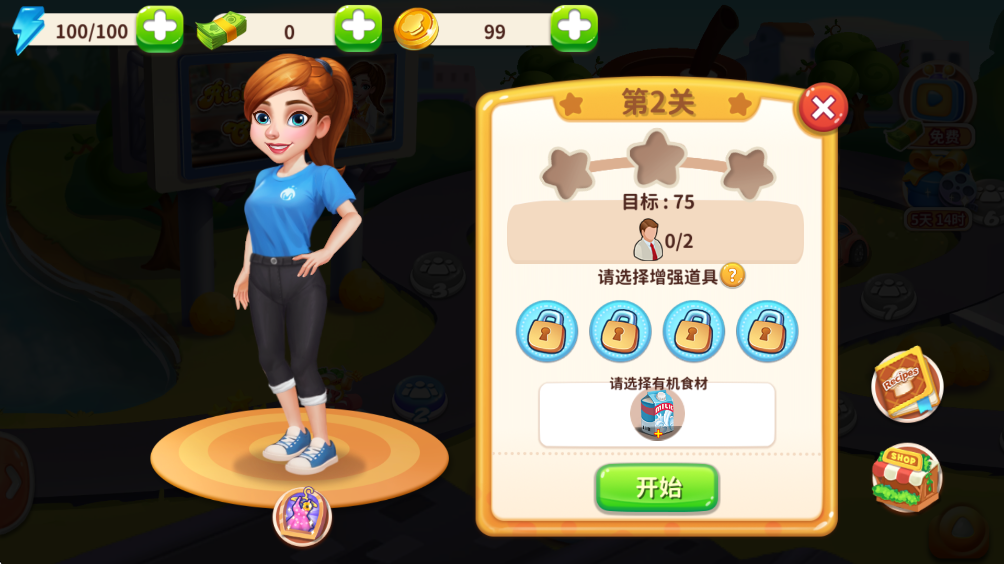 1.进入游戏后,开始第一站的烹饪管理,在这里每一关都有不同的任务目标!