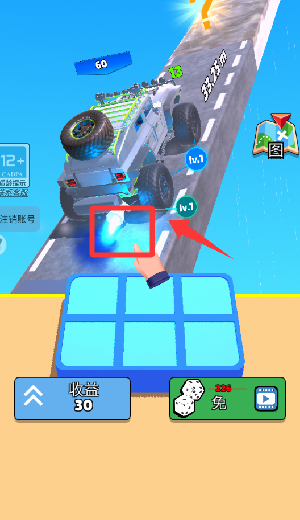 4.点击蓝色的烟筒使车跑的更快。