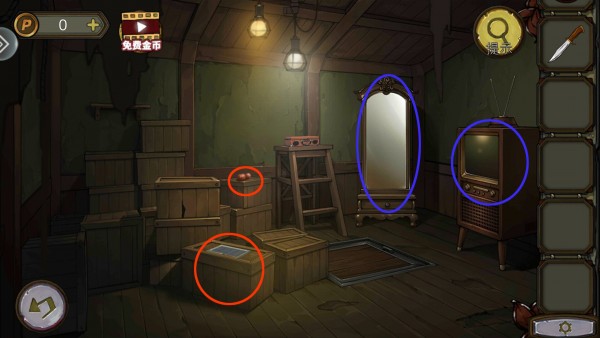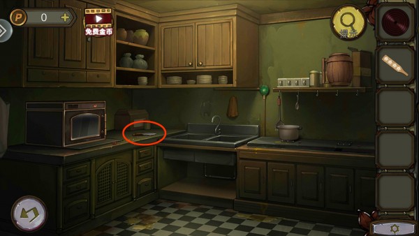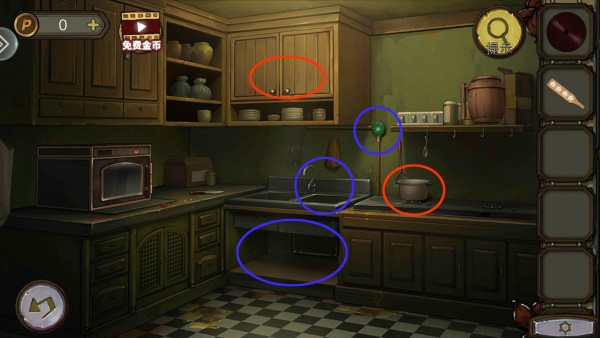 9、玩家到地下室后先点镜子,可以拿到黑布,玩家用黑布到厨房水龙头浸湿,擦镜子。