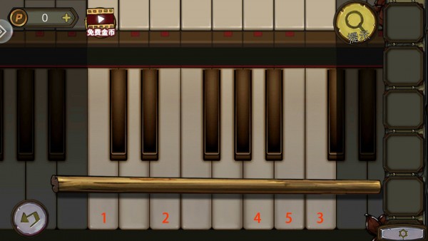 7、玩家用钥匙打开钢琴,然后按下所有琴键,可以拿到木棍。随用玩家用木棍拿吊灯上的信封,然后在信里拿到唱片。