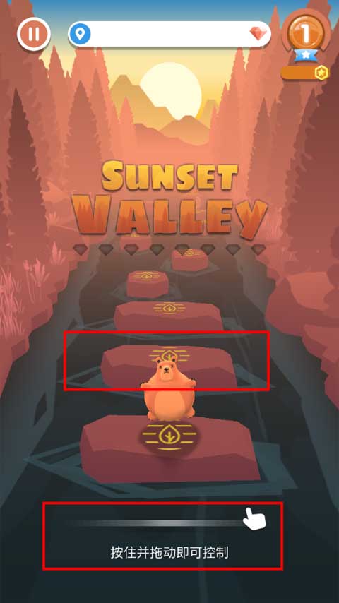 2、玩家需要按住并拖动即可控制小熊,左右用来控制角色的方向,按住用来确保角色持续跳跃。
