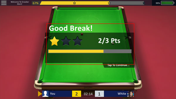 4、打进一个球,下方就会显示数字,当你将所有的台球全部打进就表示通关成功。