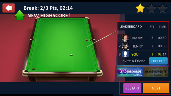 6、右边会显示你最终的排名情况,你可以点击“RESTART”重新开始这道关卡,获取点击“NEXT”进入主界面。