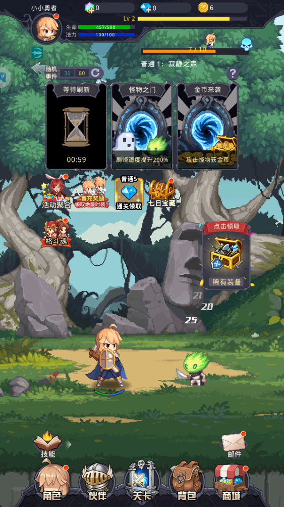 在关卡处选择已通关的关卡(例如:目前处于第11关,可以选择1-10关),角色可以挂机打怪,积累经验进行升级。打不过领主很有可能是因为角色与怪物等级相差太多,以至于怪物会频繁闪避,很多攻击都无法打到怪物身上。