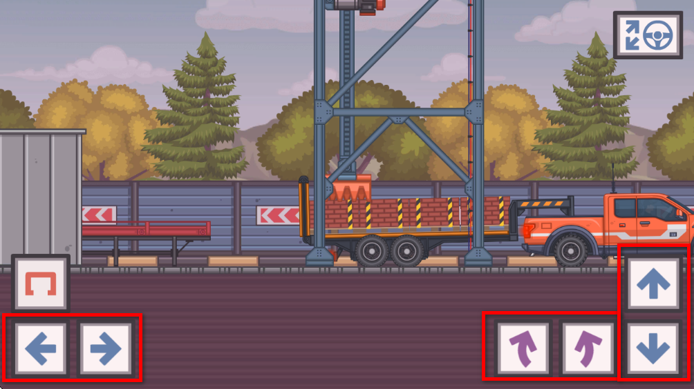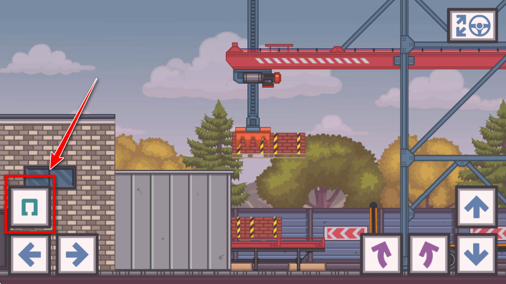 3.夹取货物后将叉车开到卡车中,再次按下左下角绿色的夹子按钮就可以将货物放在卡车上。