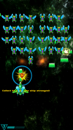 2、一共有三波敌人,第一波是最简单的,玩家还可以在击败敌人飞船后拾取加强的道具