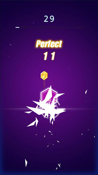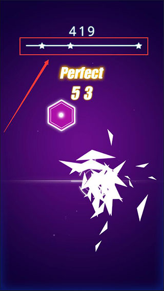 3、然后上方就会陆续落下音符块,当它们落至白线时,玩家的准星恰好触碰到它,即可获得相应的评分和分数。