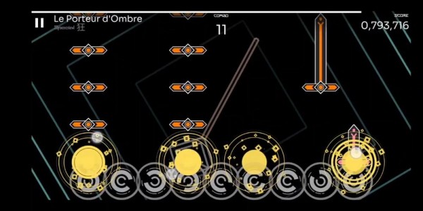 有时圆圈会暂时消失,取而代之的是一条线。当音符到达线的位置时,及时打击完成判定。
