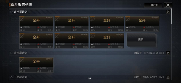 战斗报告:可以获取玩家舰队的战斗详细信息,包括战斗损耗、歼敌数量、获取奖励数量等。