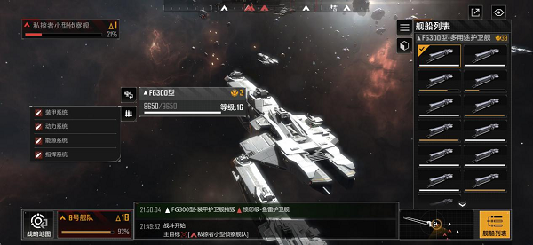 战斗界面主要的构成就是战况信息和舰船列表,战况信息就是中间部分的聊天框,可以实时获取敌我的详细战况信息。战舰列表可以获取玩家战舰具体的损耗情况。