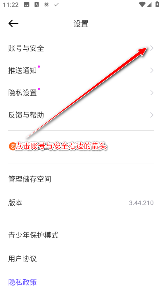 2.点击账号与安全右边的箭头