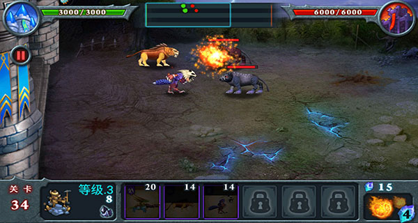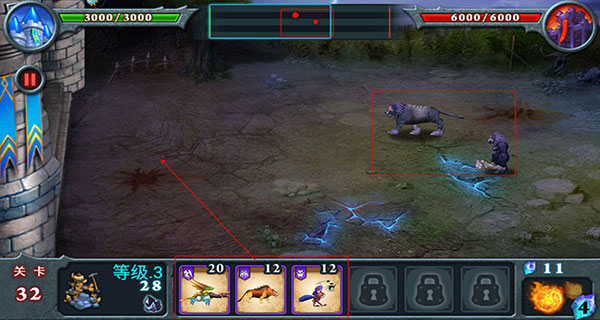 5.战斗策略。不要急于召唤兽王,待对手的兽王接近我方城堡时再应战。将战线控制在我方,有利于新兽王快速加入战斗,形成以多打少的局面,减少兽王的损伤。
