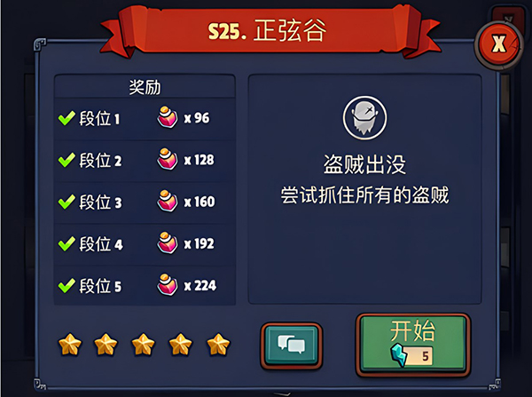 3、不同关卡挑战的任务也不同,有盗贼出没、无限增强、生存游戏等等任务。每天可以挑战一次关卡。