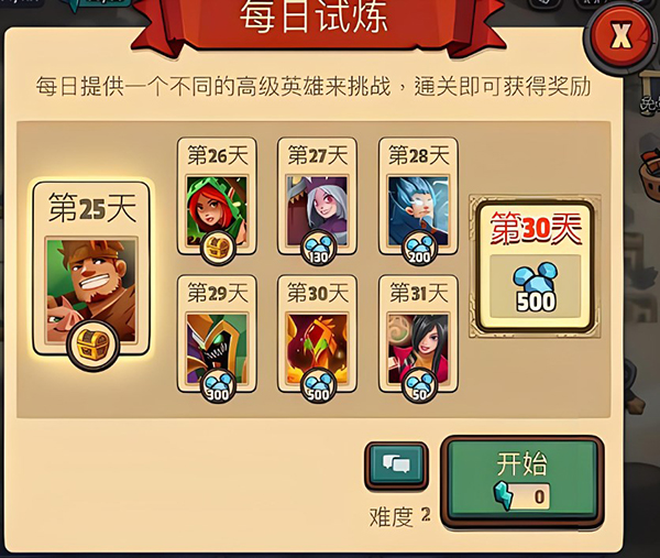 2、此玩法每日会提供一个不同的高级英雄来进行挑战,在挑战过程中您可以充分体验英雄的技能效果,并且在挑战完成之后还会获得大量奖励,天数越高获得的奖励越丰厚!