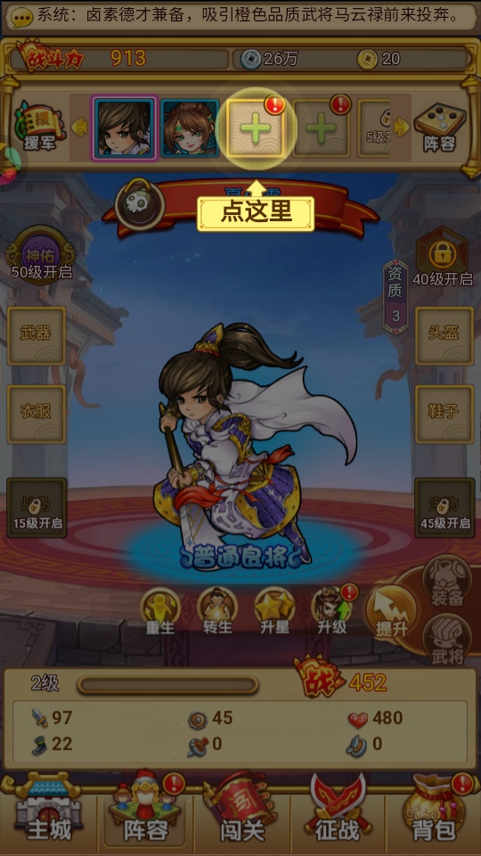 2.进入阵容界面将我们武将和上阵的武将进行切换即可。