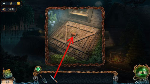 在道路右侧房屋窗户下有一个地下室的大门,点击这个大门。