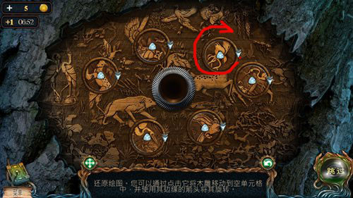 如果有的木雕放错位置了,可以点击它们,木雕就会移动到中间区域,然后再点击正确的木雕,就能移动到空出来的地方,利用机关中间的空洞来移动位置。