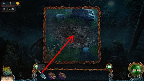 点击铲子,再点击这一块地面,就能铲掉泥土。
