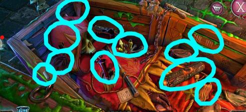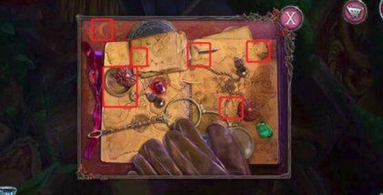 如下图,地图上可以直接找到的月亮有五个,大家找不到的是第六个月亮,其实这个月亮是在箱子盖子上的左边,大家仔细看一下!