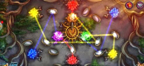 使用镜子将彩色射线引向中央的水晶,每块水晶都需要两种不同颜色的适当组合,完成游戏,拿到【太阳印记】。