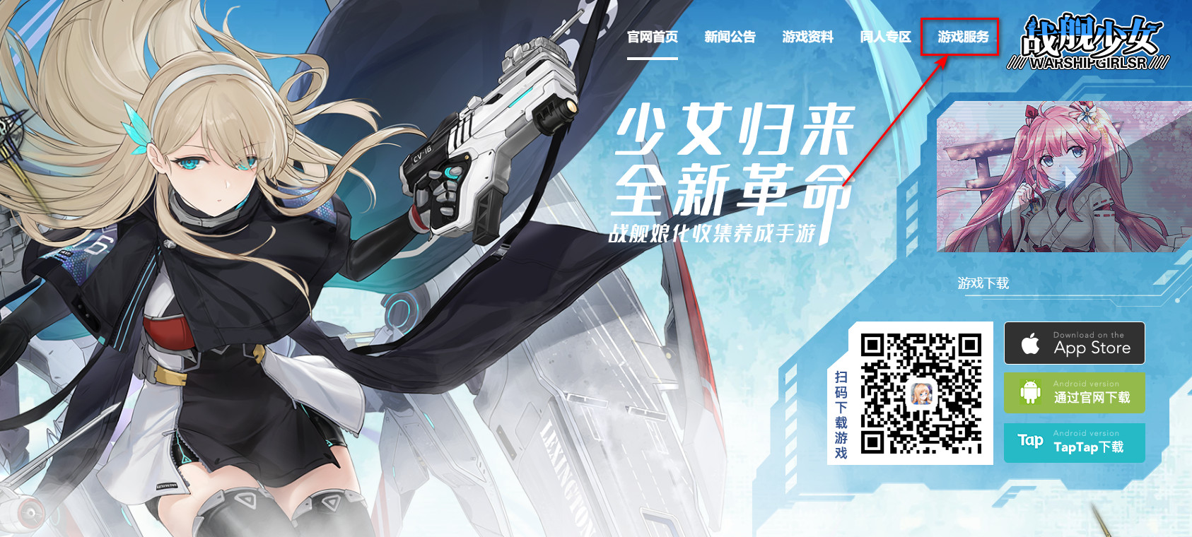 1.首先我们要去游戏的官网,选择游戏服务