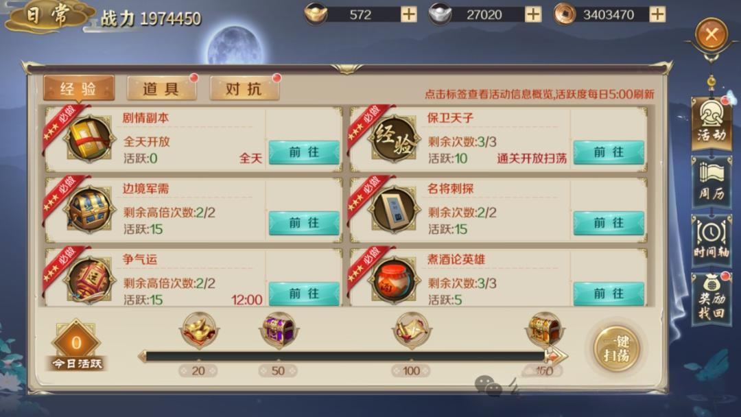 边境军需:30级可以参加,给经验、武勋,国运期间+50%(国运时间12:00-14:00;21:00-23:00)