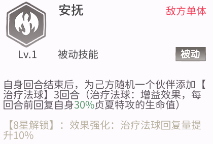 培养优先级:优先锁定 “增加特攻” 与 “提升生命值” 的养成选项,这两项属性直接决定她的治疗量与生存能力。