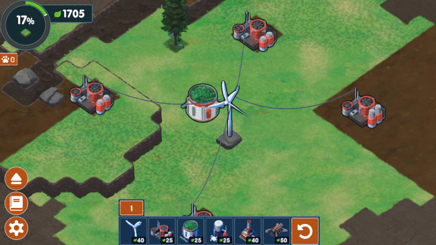 2.这些土地默认为被污染的,所以我们需要土地净化器,但是这些设备需要电,一般来说需要先建造风力发电机。
