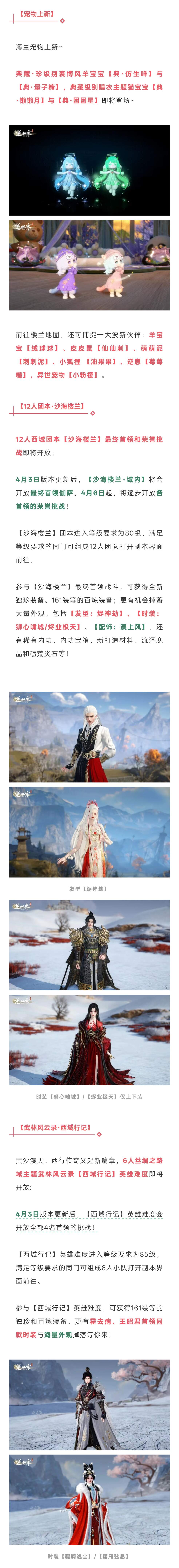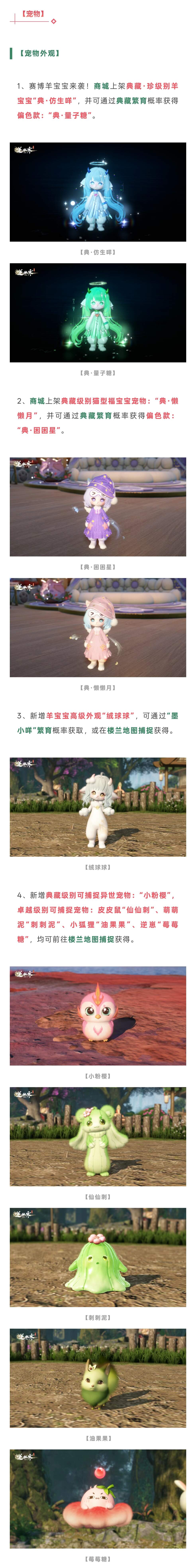 1、游戏设置中新增宠物语音及宠物唱歌相关设置。前往游戏【菜单-设置-声音分类】下,可自由调整宠物语音和唱歌的音量大小,或设置屏蔽其他玩家宠物语音的开关功能。关闭开关后将不会听到其他玩家宠物唱歌和触发语音(但宠物的普通叫声仍会保留)。