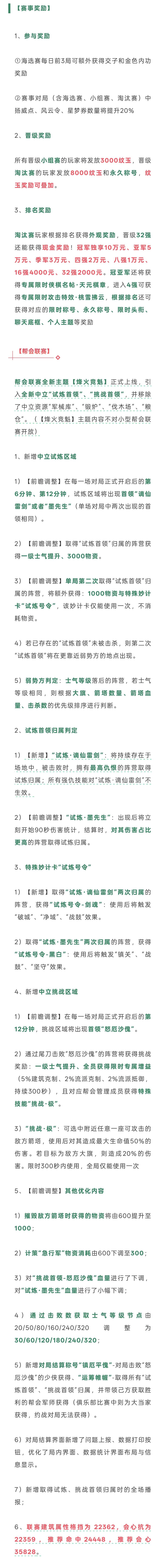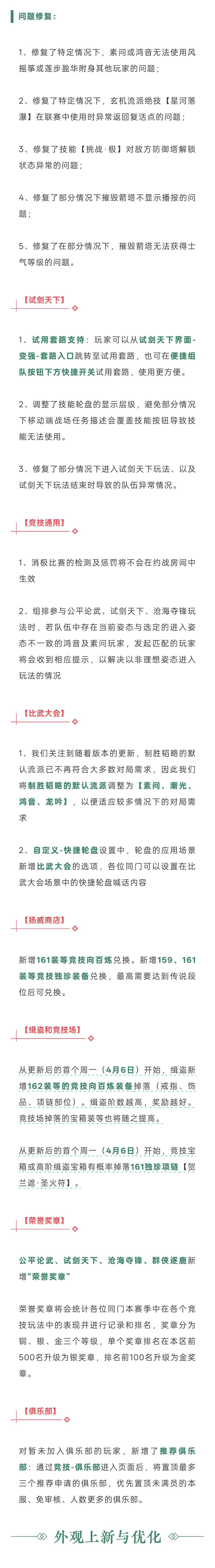 1)调整了技能进阶与化境效果中获得的护盾值,在绝大多数情况下将得到提升,公平论武玩法中护盾值不变。
