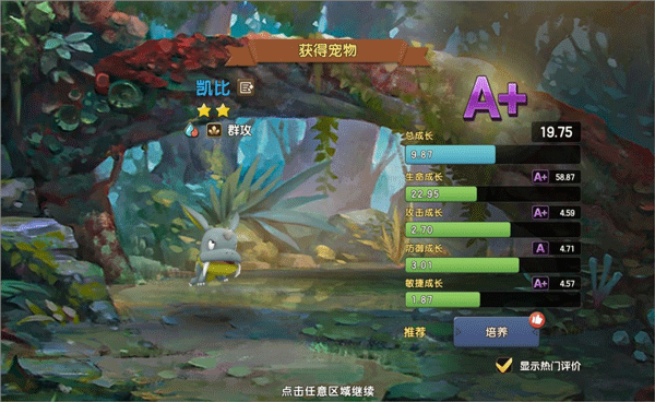 捕捉后,就能看到所捕捉宠物的详情啦,摩卡就捕捉到了一只初始2星,成长上限为A+级的宠物哦,后续乌力也会继续讲解关于宠物的星级、成长各种机制,请各位驯兽师持续关注哦!