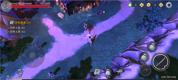 4、根据主线任务,玩家需要击败土匪,我们点击武士刀虚拟键攻击敌人;