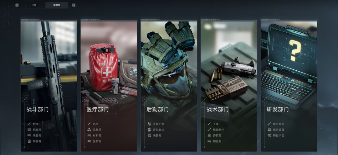 除了进入【交易行】购买以外,我们在行前准备阶段,也可以直接点击空缺的物资栏目,更快捷地购置战斗物资。