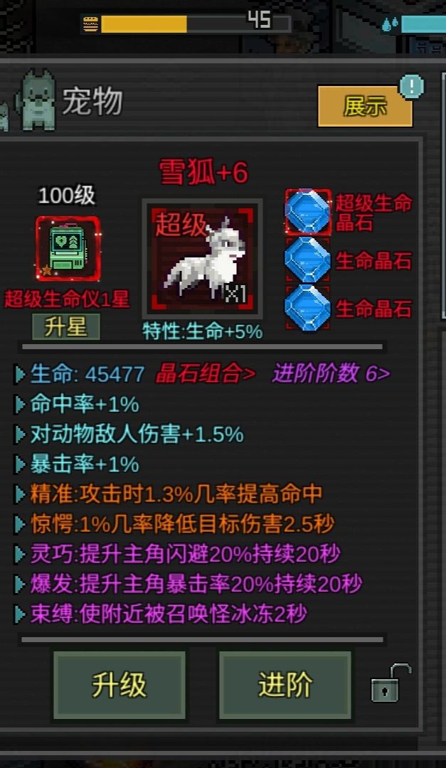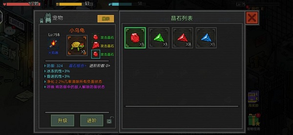 除了强化与进阶之外,宠物还可以装配配件获得额外技能,它的属性也能通过镶嵌晶石获得提升。