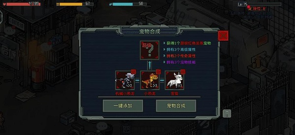 除此之外,三只低级宠物还能进行合成操作,转化为高一个品质的宠物。譬如我合成了三只哈士奇,则会获得一只蓝色品质的哈士奇。