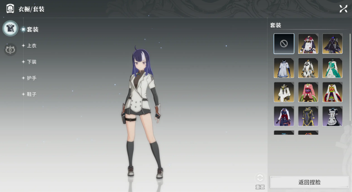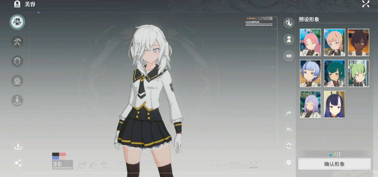 3.美容部分分为:预设形象.发型调整.脸型调整.面部特征.体型调整。预设前面提到过了,预设形象选择界面支持时装试穿,可提前查看角色在不同服装下的效果。